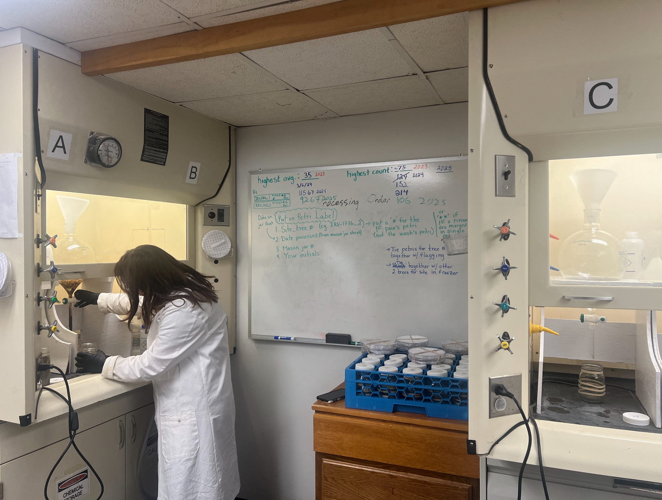 A large open room is critical for the lab, as is close proximity of all stages in the process because they must be completed with proper timing. Staff mentioned that a branch sample will go through at least five different stages in a day, making the flow between rooms part of the daily efficiency.