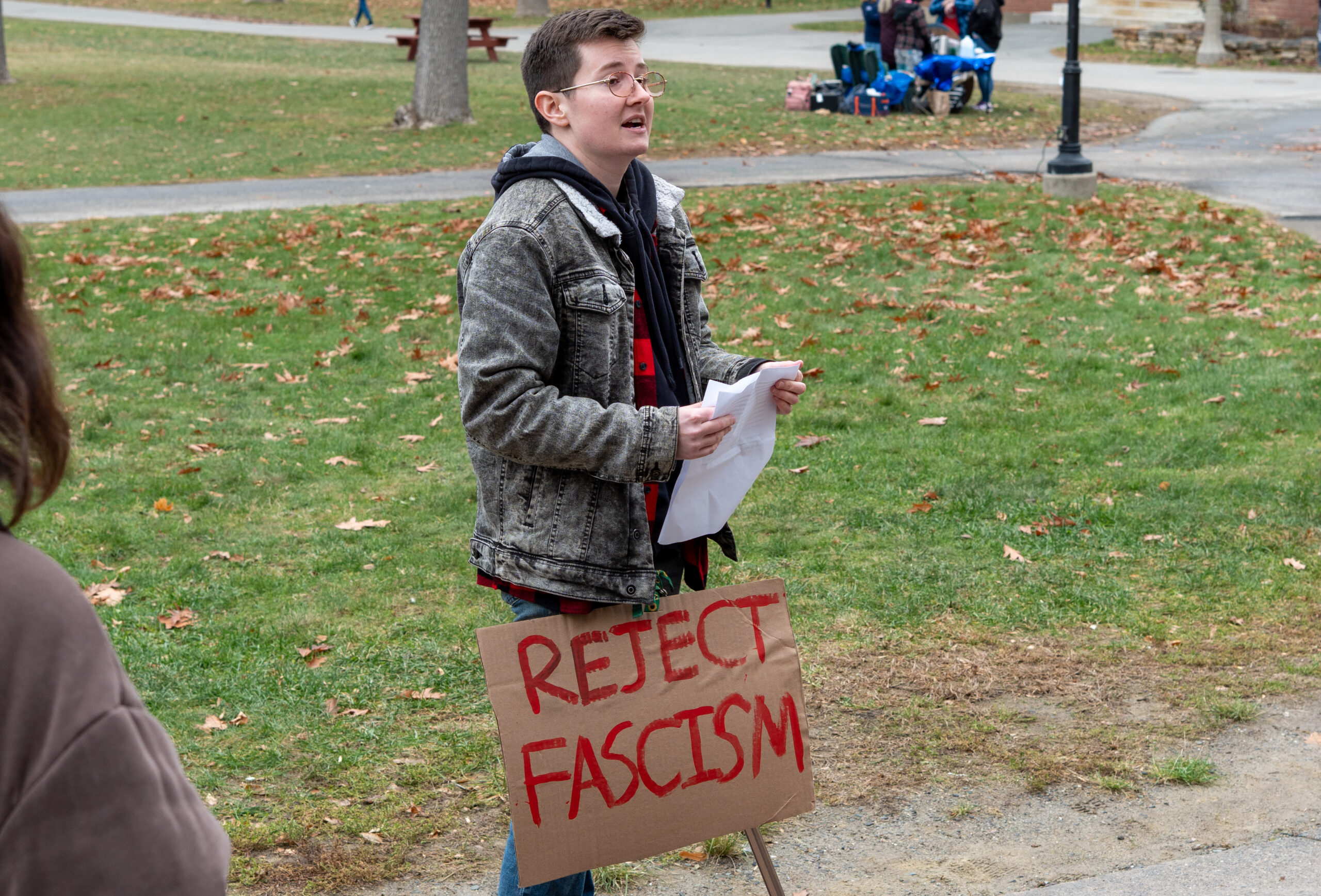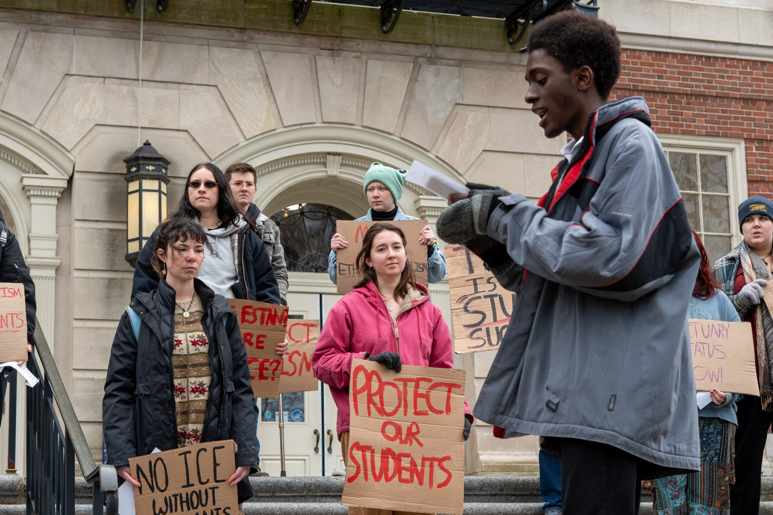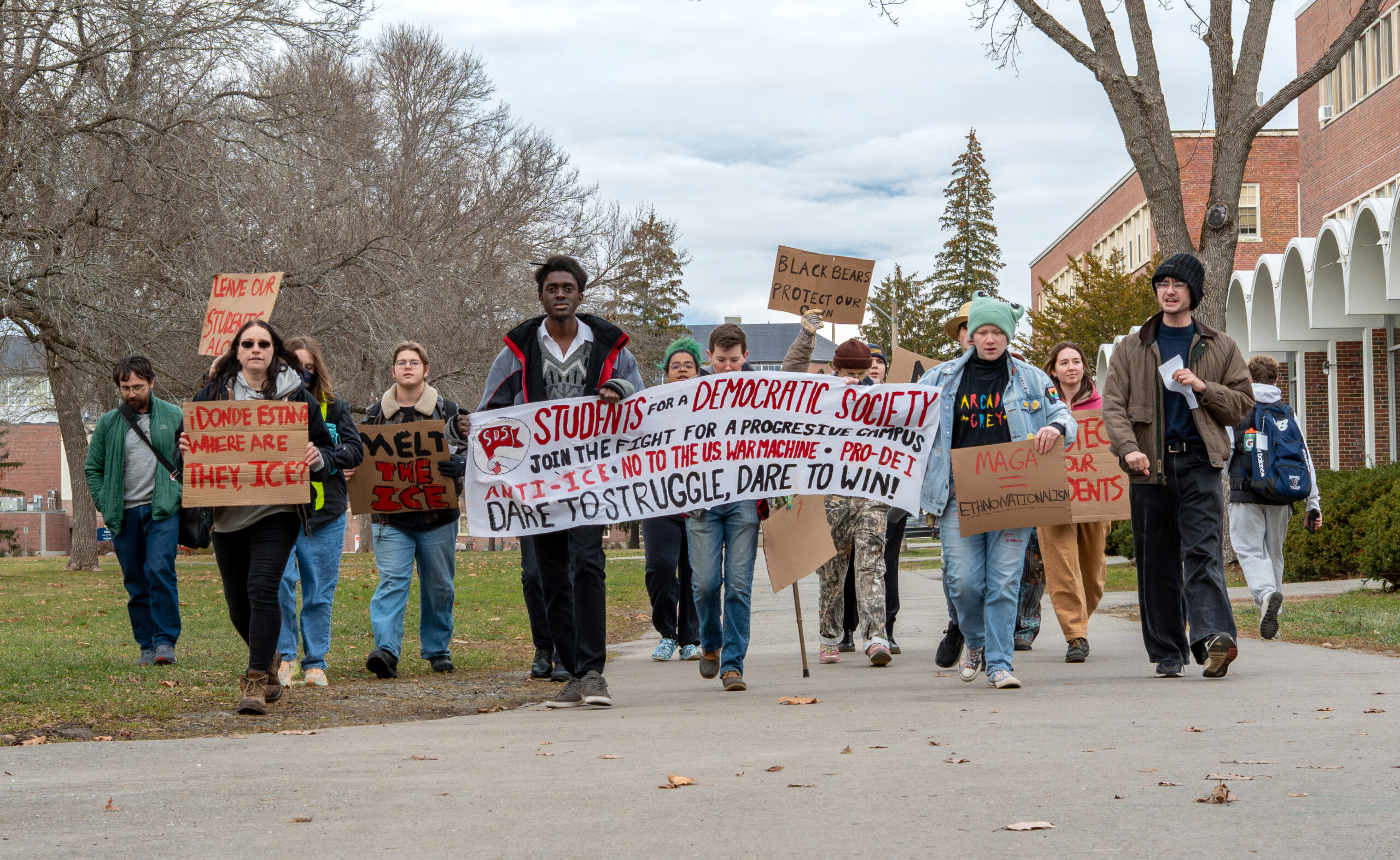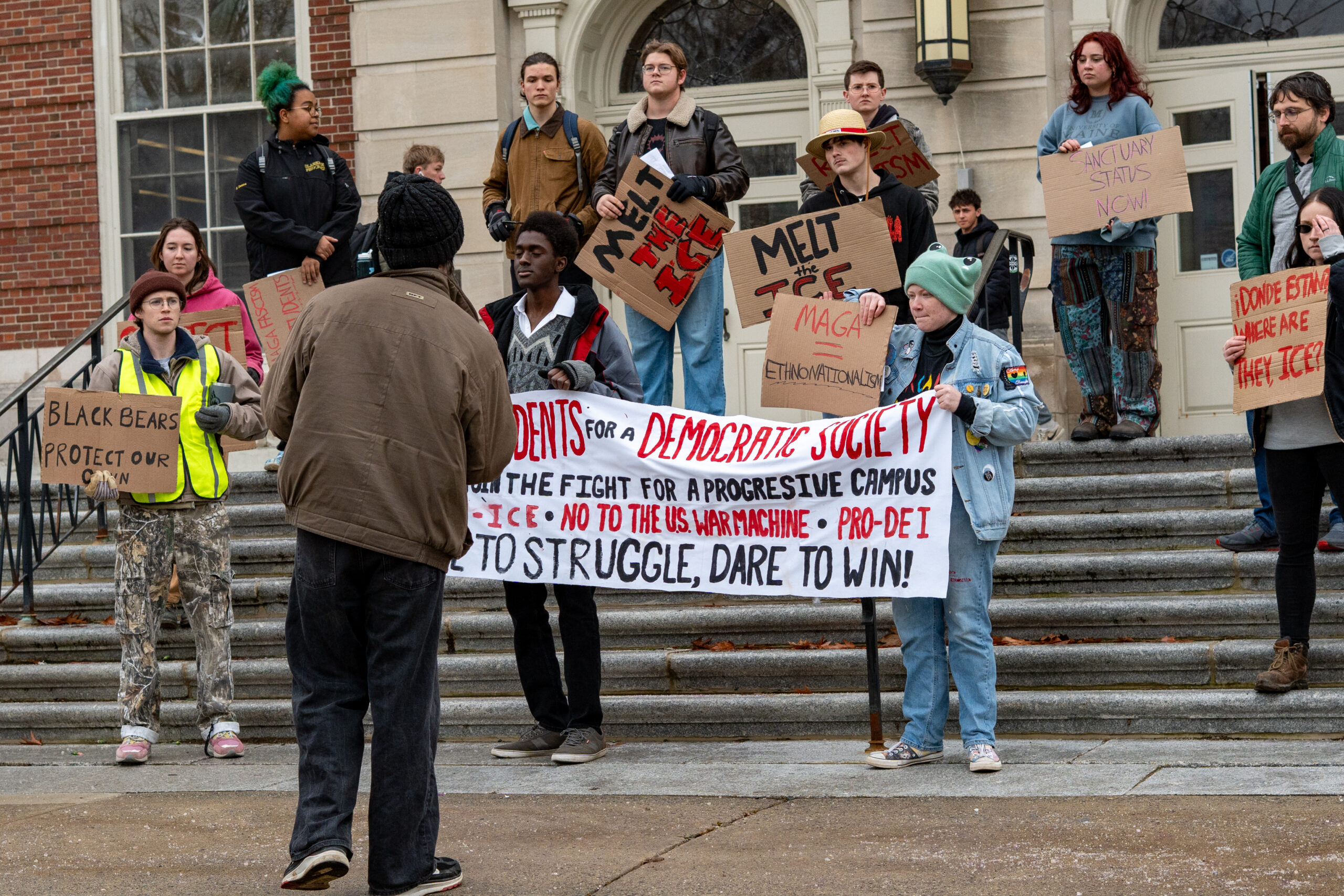 On Nov. 21, the University of Maine’s chapter of Students for a Democratic Society (SDS) met on the steps of Fogler Library at noon to demonstrate frustration and defiance against the Trump administration’s current agenda.