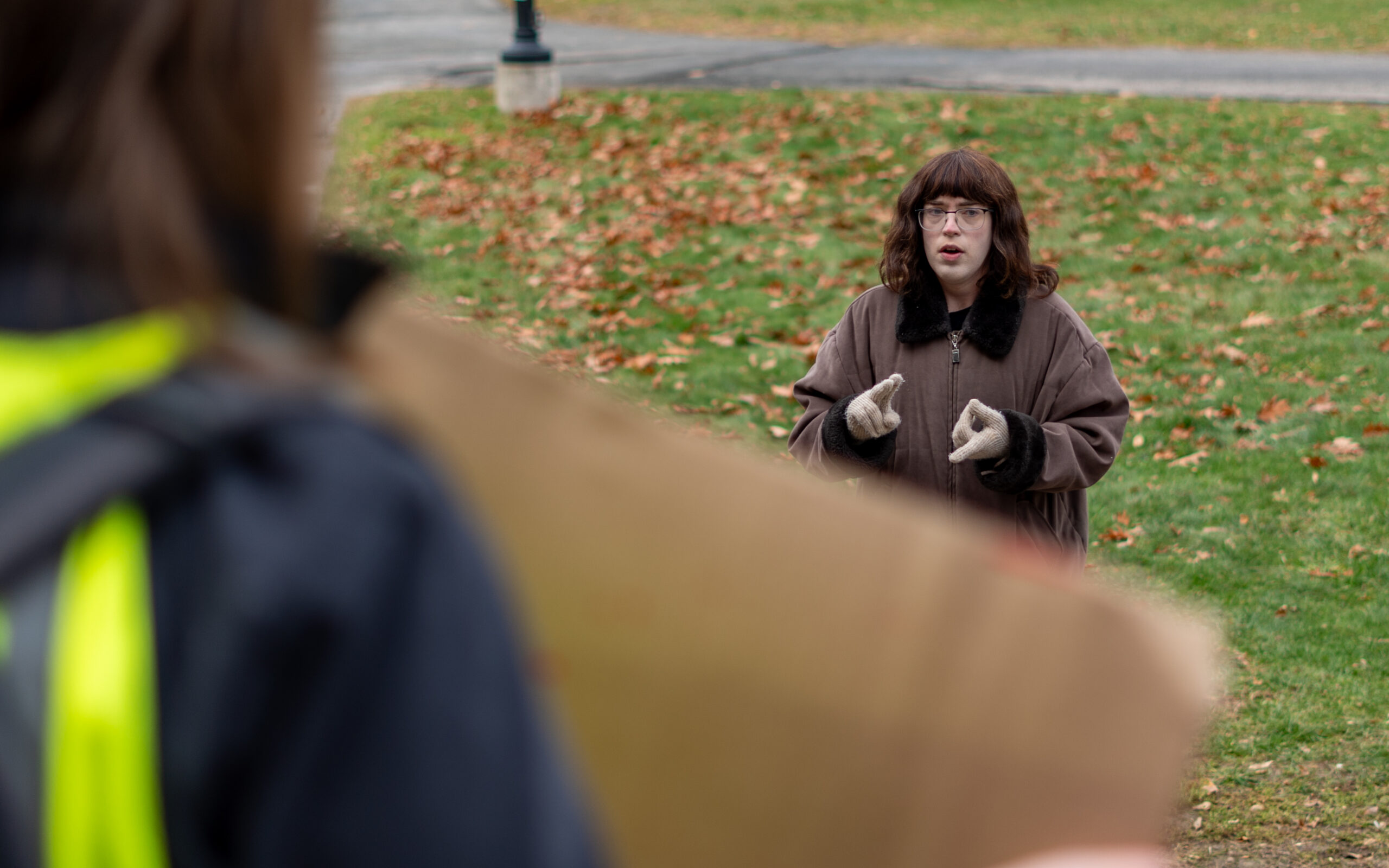 One of several students leading the rally was SDS member Gabriel Veilleux, who organized the demonstration.