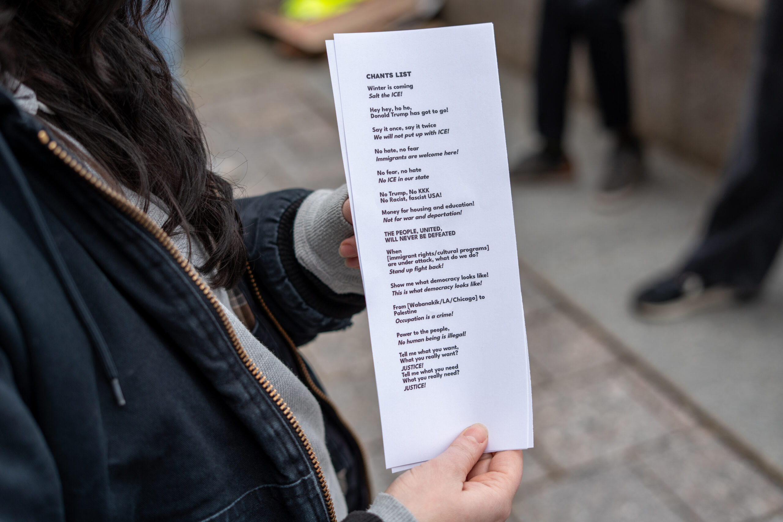 “Winter is coming, salt the ICE,” “Hey hey, ho ho, Donald Trump has got to go,” and “No fear, no hate, no ICE in our state,” chanted the protestors. “From Wabanaki to Palestine. Occupation is a crime,” they said.
