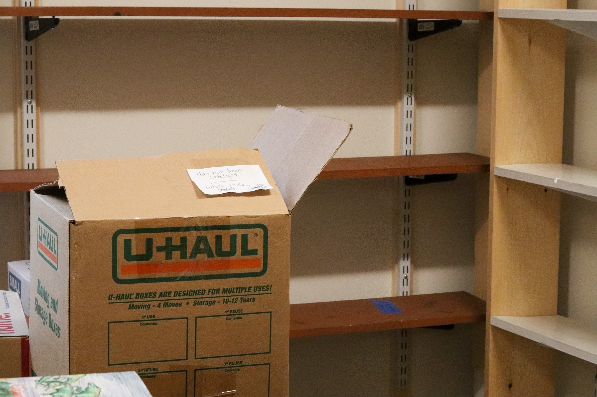 Walking away from the kitchen and into the common area, Roberge brought attention to the three small library rooms that would house the Centre’s Ringuette Collection, Franco Studies Collection and the Genealogy Room. Piles of boxes remained unpacked in these rooms, despite volunteers and staff doing a relatively thorough job setting up other rooms in the space. Roberge attributed the pile of remaining boxes to delays getting shelving ready.