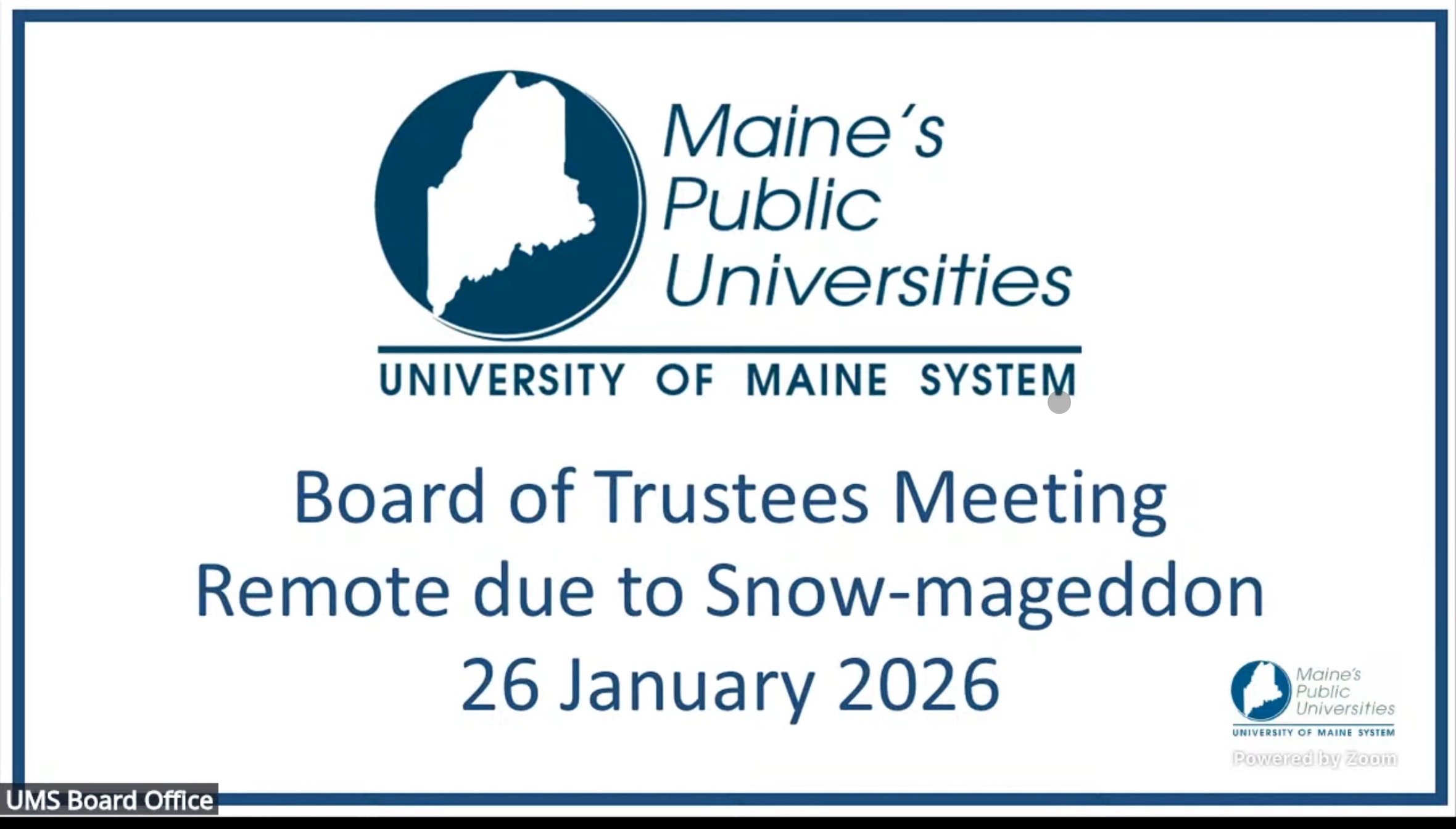 The University of Maine System Board of Trustees (UMS BoT) met on Jan. 26 to hold a public commentary hearing. The meeting was held via Zoom due to the major snowstorm and ongoing frigid conditions. The BoT is a 16-member board, 15 of which are appointed by the governor and confirmed by the Maine State Legislature. The board oversees academic programs, tuition, faculty tenure and system-wide budgets. The meeting started at around 8:30 a.m. with an opening statement from BoT Chair Trish Riley and concluded several hours later.